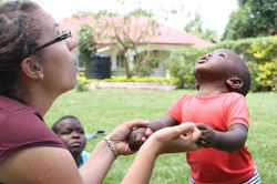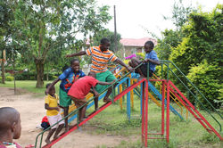 The children love to play around in the garden and sandbox and mostly they love to prove themselves in our fun&adventure playground. We can also go for walks with them inside the ministry, where they always discover new fascinating things. When the rain is falling they also like to play inside or in our "House Abaana" (games house for children).